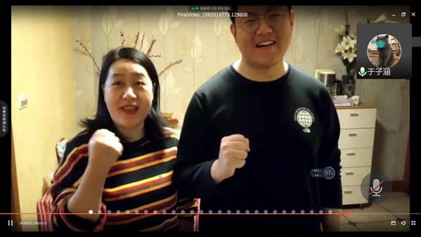 “面对疫情,李新喜第一时间返回工作岗位,他说要建立以党员为先锋的防控防线,严格落实党中央让党旗飘起来,党徽戴起来,党员身份亮出来的号召!”会议伊始,支部党员张帅便分享了中共党员李新喜的抗疫事迹。紧接着支部党员薛源赠辉也讲述了他心中的感人战“疫”瞬间,作为一名抗击疫情防控社区工作者,他不仅为勤恳为社区人员服务,也在服务过程中认识了许多典型抗“疫”人物,“刘叔”就是他心目中的抗“疫”榜样,“刘叔听闻一名孤寡老人疫情期间不方便买菜的事情后主动承担起日常买菜的任务,这样别人一天工作八小时,他比别人工作量多一倍,每天只有两个小时的睡眠。”他说,“我们国家可以在病毒面前临危不惧、沉着应对,多亏了我们身边有一群可爱的人。”支部党员王向博则用一封湖北孩童的家书讲述了一位普通的父亲的伟大抗疫事迹,呼吁大家读懂平凡中的伟大。最后,会议播放了音乐2017级团支部全体成员共同制作的抗“疫”视频,他们利用专业优势动情唱响《明天会更好》,一帧帧视频和一句句歌词让全体与会成员重温感人战“疫”瞬间,学习中国抗“疫”精神。