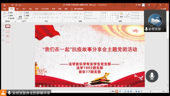 为引导广大团员青年坚定“四个自信”,深刻理解“全球抗疫中的中国担当”,增强打赢疫情防控阻击战的决心和勇气,4月30日晚,由法学音乐学专业党支部牵头主办,法学1802班团支部、音乐2017级团支部承办的“同一张考卷,不同的成绩”抗疫故事分享会主题党团活动在线上顺利召开,共近80名党员、团员参与此次活动。