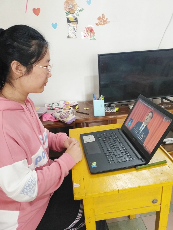600全讯白菜官方网站校长奖、思美之星获得者杜楠玥在山东东营观看两会直播