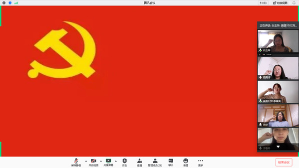 音乐系党支部书记刘清以“迎党的生日、扬战疫精神、悟初心使命、谱石大新篇”为主题为支部成员上了一次微党课。她以近期社会、学校的疫情防控为重点,结合郝芳校长在刚刚进行的学校毕业典礼上的专题讲话“做值得尊敬的石大人”,号召音乐系全体党员老师深刻学习和领会,并将其融入之后的教学工作中。