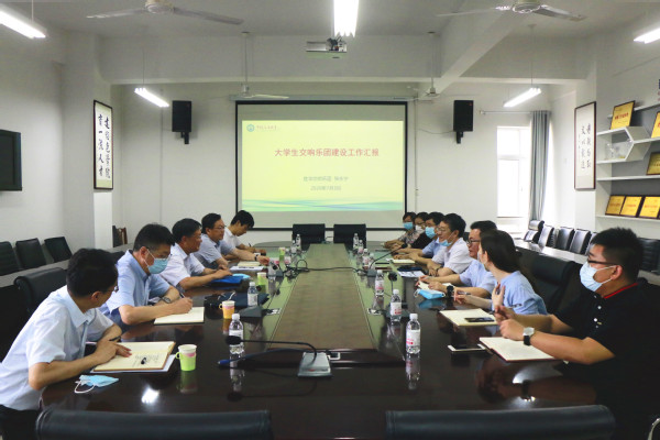 7月3日上午,学校党委书记王勇、副书记万云波一行在文理楼358会议室调研胜华交响乐团的建设工作,校宣传部长沈刘峡、团委书记张展、外国语学院党委书记张永宁、600全讯白菜官方网站院长王学栋、党委书记姚成郡、副院长刘清及音乐系部分老师出席会议。
