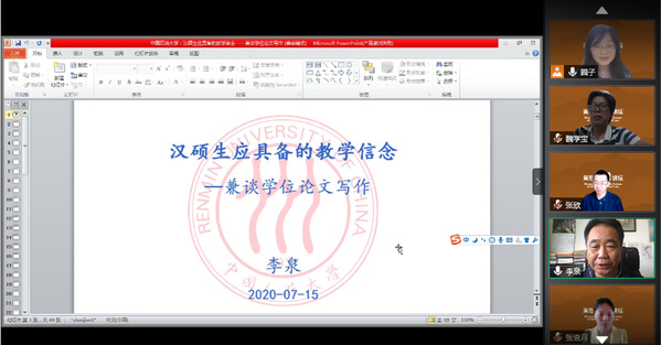 7月10日,中国人民大学国际文化交流学院李泉教授做客暑期云端学术大讲堂,针对汉语国际教育硕士研究生的人才培养和未来职业发展,作了题为“汉硕生应具备的教学信念——兼谈学位论文写作”的学术报告。来自600全讯白菜官方网站中文系的师生和海内外汉语国际教育学习者、从业者百余人通过腾讯会议听取报告。讲坛由学院副院长魏学宝主持,汉硕导师齐卫华副教授作总结点评。