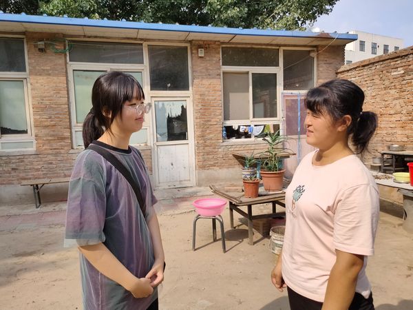 实践队员采访小区居民 刘依诺 摄