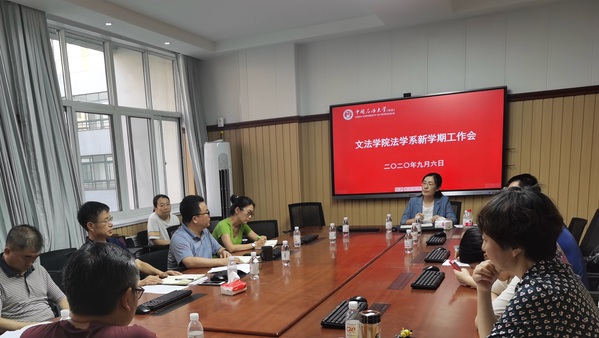 9月6日,法学系在文理楼306召开新学期教学工作会暨线上教学研讨会,王学栋院长、姚成郡书记及法学系全体教师参加了会议。姚书记指出全体教师要以融入并贡献集体为目标准确定位,发扬敬业奉献的风尚,坚守求是守正的风格,形成进取图强的风貌,保持高尚典雅的风致。法学系主任孙增芹老师对新学期常规工作、学科升级、学科评估、人才引进、课程思政建设、民法典宣讲等工作进行了详细部署。之后全体教师对上学期线上教学工作进行讨论和总结,分享线上教学经验,交流心得。最后王学栋院长针对法学系面临的机遇和挑战,希望法学系全体教师主动作为,服务学校,积极融入,争取资源,聚集重点,体现特色,敬业奉献,和谐发展。