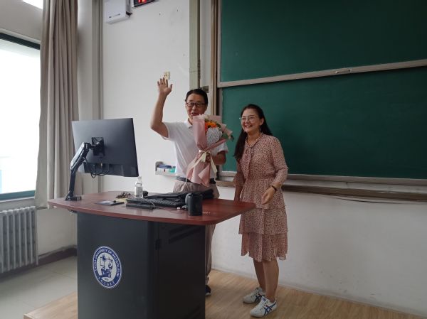汉语言文学专业1802班为班主任陈在东送上鲜花和祝福 王焱焱摄