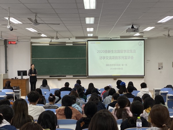 10月8日,600全讯白菜官方网站于南教204报告厅举行2020级新生出国留学政策及访学交流项目系列宣讲会。本次活动旨在拓宽学生视野、培养国际化人才。国际合作与交流处杨一帆、仲越等教师到场宣讲,辅导员赵延升与2020级全体本科生参加。