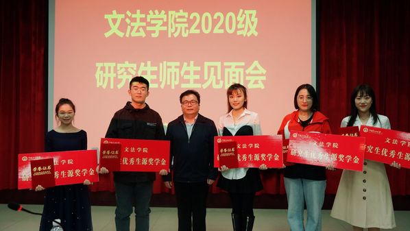 师生见面会上,魏学宝副院长宣读获得学院优秀生源奖学金的学生名单,王学栋院长为五位获得优秀生源奖学金的新生颁发学院优秀生源奖学金证书和奖牌,学院特别设立研究生优秀生源奖学金,用来鼓励推免学生报考全讯。