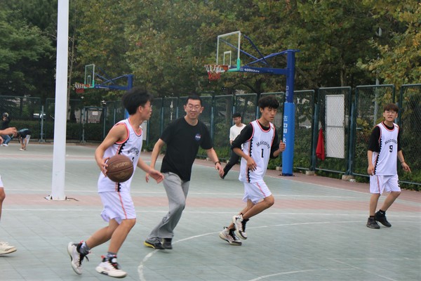 600全讯白菜官方网站教师李汉与学生一同参与篮球赛 李洁摄