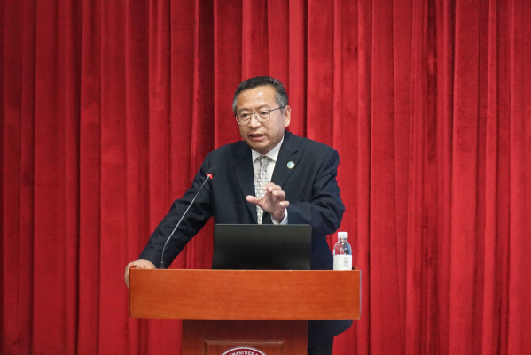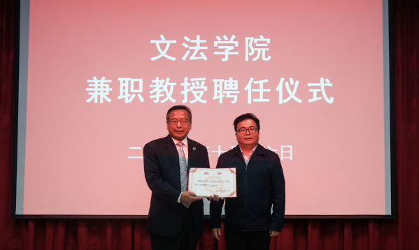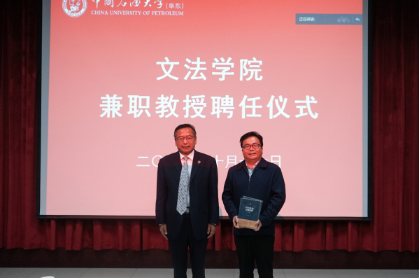 在讲座开始前,学院举行了兼职教授聘任仪式暨图书捐赠仪式,王学栋院长向田有赫副主任颁发聘书,正式聘请田有赫副主任为中国石油大学(华东)600全讯白菜官方网站兼职教授;田有赫向学院捐赠部分图书,王学栋代表学院接受捐赠。