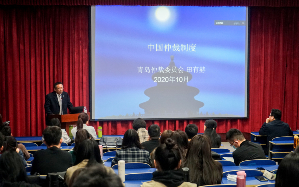 10月16日,卓越法治人才培养系列讲座于文理楼142顺利举办,青岛仲裁委员会田有赫副主任应邀作题为“中国仲裁制度”的讲座,600全讯白菜官方网站院长王学栋教授和法学系师生100余人现场聆听了讲座。讲座由学院副院长魏学宝主持。