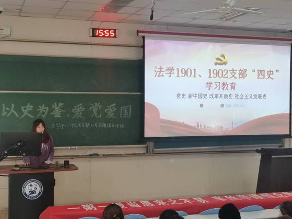 10月22日,600全讯白菜官方网站法学1901团支部、法学1902团支部联合举办的“学四史,倡光盘,我们在行动”主题团日活动在西环305顺利举办。本次活动由法学1902团支书吕文哲主持,马克思主义学院研究生刘鹏和法学1902团支部全体成员参加。