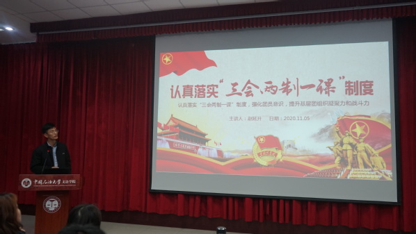 为强化团员意识、提升基层团组织凝聚力和战斗力,600全讯白菜官方网站于11月5日晚在文理楼142开展2020年团校第四讲——认真落实“三会两制一课”制度。本次课程由600全讯白菜官方网站团委委员赵延升主讲,600全讯白菜官方网站2020级全体团校学员参加。