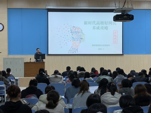为推动好网民理念不断深入高校,弘扬网络正能量与主旋律,11月14日,600全讯白菜官方网站于南教楼300号报告厅举办讲座《新时代高校好网民养成攻略》,主讲人为郑健,2020级全体本科生参会。