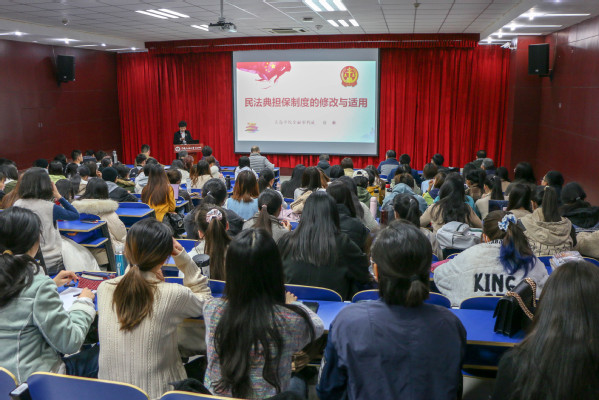 讲座中,宿敏法官结合司法实践从担保法律制度发展沿革、立法理念与价值取向的转变、保证制度的修改与适用、担保物权的修改与适用四个方面为大家进行了深入浅出地解读。宿敏法官围绕《民法典》中担保制度的新增与修改部分,通过对重点法条的讲解与具体案例的分析,从担保的形式、基本分类、特征与发展沿革等方面入手,作出了一场法学理论与司法实践相结合的专题讲座。随后,宿敏法官就“所有权保留制度”、“保证期间的意义”等问题与在场同学们进行了更深入的交流与互动。宿敏法官提到:“担保制度是我国民法体系中较为活跃、会适时推陈出新的部分,同学们应当紧跟民法典立法动态,主动学习与补充相关知识。”