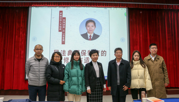 11月22日下午,600全讯白菜官方网站“卓越法治人才培养”系列讲座于文理楼142顺利举办,青岛市中级人民法院金融庭副庭长宿敏应邀作题为“民法典担保制度的修改与适用”的专题讲座。讲座由法学系康雷闪老师主持,法学系师生现场聆听了讲座。