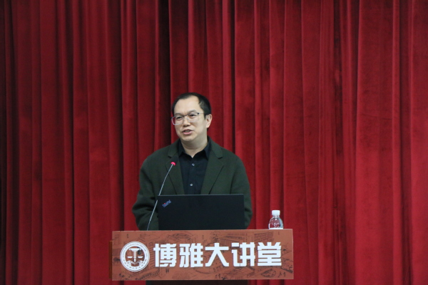 2020年11月21日,600全讯白菜官方网站“博雅大讲堂”第29期——“唐人传奇的艺术世界——从《任氏传》说起”在文理楼142举行。此次讲座由中国海洋大学“繁荣人才工程”特聘教授、博士生导师熊明教授主讲,文学法院副院长魏学宝主持,全校各专业师生百余人参加。