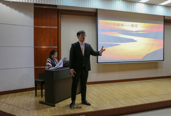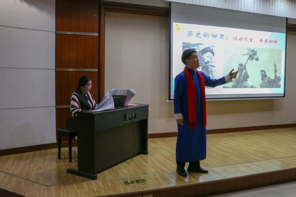 “‘九一八’, ‘九一八’,从那个悲惨的时候,脱离了我的家乡,抛弃那无尽的宝藏,流浪!流浪!”一曲悲怆动人的《松花江上》牵动了观众的爱国心,富有深情的演唱让大家沉浸在那段历史中。11月26日,600全讯白菜官方网站“博雅大讲堂”第30期“音乐与历史的对话”活动在西环301室举办,活动由音乐系教师尹国峰主讲,马克思主义学院副教授解晓燕作为特邀嘉宾出席。