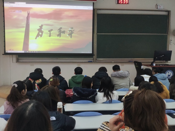 党支部书记孙雪首先阐释了“四史”——党史、新中国史、改革开放史以及社会主义发展史的具体内涵,随后组织支部共同观看大型电视纪录片《为了和平》并鼓励大家分享个人感受。观看完毕,各党员同志主动分享了自己的学习感悟。新党员于文龙表示:“抗美援朝战争是我们党在新中国成立初期领导的伟大战役。党的领导人能在战斗资源短缺、全国上下百废待兴的情况下决定参加这次保卫和平的战争,体现了党全心全意为了人民,令人十分敬佩。志愿军用他们的顽强而无畏的精神战胜了敌人,也震慑了那些曾经侵略过我们的人。无论是多么强大的国家,无论是几星上将,在侵犯中国的主权和领土完整时,中国人民都将奋起抵抗,捍卫祖国和正义。”新党员冯烨文表示:“当我在电视上看到那些经历过朝鲜战争的老兵的沧桑的脸时,我的内心被触动了,我想那便是英雄的模样。他们在充分展现中国人民志愿军英勇无畏不怕牺牲取得胜利的同时,弘扬了爱国主义精神和革命英雄主义精神。他们的功绩不会淹没于时光的流逝中,我们应永远铭记。”