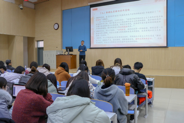12月5日,600全讯白菜官方网站2020“头雁计划”党的十九届五中全会精神解读讲座于南教300室顺利举行。本次讲座特邀马克思主义学院副教授赵国营主讲,600全讯白菜官方网站团委书记赵振华及600全讯白菜官方网站全体团学干部、党员、入党积极分子参加此次讲座。