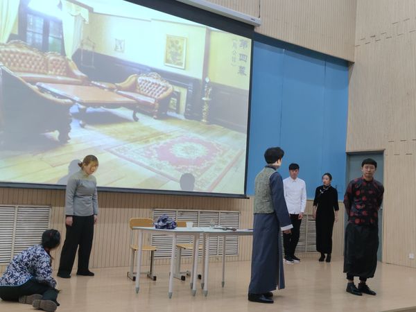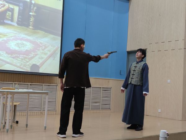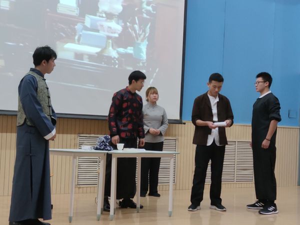 此外,汉语1901团支部还积极排演了曹禺先生的话剧《雷雨》。中国话剧自诞生至今已走过了100年的历程,《雷雨》是我国话剧艺术的巅峰作品,此剧以1925年前后的中国社会为背景,描写了一个带有浓厚封建色彩的资产阶级家庭的悲剧。对于一个非专业团队,排演《雷雨》是一个极大的挑战。全班同学不惧挑战、迎难而上,编剧组本着尊重经典作品、保持剧本原貌的原则,对剧本认真分析思考并加以适当改动;道具组的同学们在舞美、灯光、音效、道具、服装不完全具备的情况下,克服了重重困难,竭尽全力服务好话剧的演出;演员们对剧中人物和复杂的戏剧情节理解到位,并通过语言、神态和动作传神地表达了出来,繁漪的忧郁压抑、周朴园的威严持重、侍萍的悲苦痛楚、四凤的淳朴善良、周萍的犹疑怯懦、周冲的天真单纯、鲁贵的阿谀世故、鲁大海的鲁莽冲动……一个个鲜活的人物极其真切地呈现在观众面前,同学们以饱满的热情和投入的演出使话剧的艺术魅力感动着在场的所有观众。