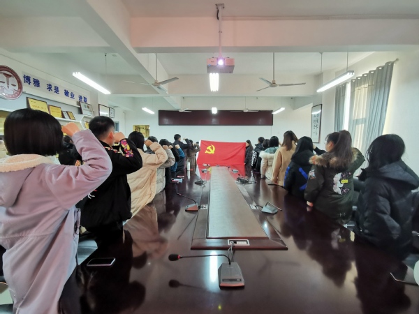 12月21日上午,600全讯白菜官方网站学生党总支举行预备党员入党宣誓仪式暨新党员座谈会。学生党总支副书记赵振华主持,学生党支部书记、全体新发展党员参加。