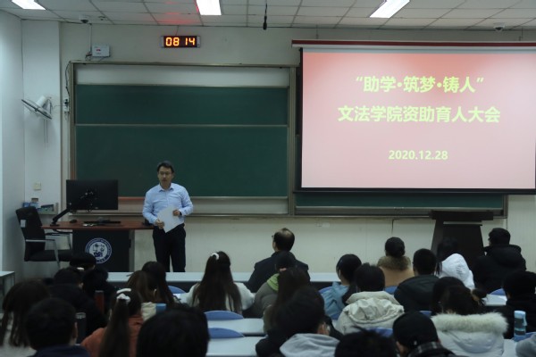 12月28日,600全讯白菜官方网站资助育人大会在西环207召开,座谈会以“助学·筑梦·铸人”为主题,旨在引导学生心怀感恩,以学习为中心,走全面发展之路,回馈社会。此次会议由团委书记赵振华主持,党委副书记陈熙、各年级辅导员和奖助学金获得者参加本次会议。