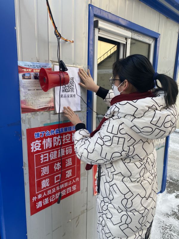 2021年2月1日下午,实践队队员宋晓楠来到拜泉县拜泉镇果品家属楼卡点。经工作人员介绍,实践队队员熟悉了卡点的工作环境。下午2时整,实践队队员完成与上一时间段志愿者的工作对接,开始进行当天为期两个半小时的志愿活动。实践队队员主要的工作内容为引导出行居民扫描指定二维码出示通行绿码,并对其进行身份登记。