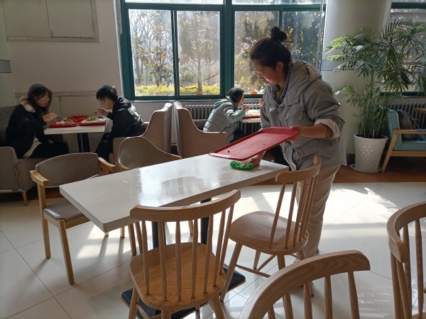 “在餐厅经理的带领下各司其职,顺利地完成了各项清洁任务。此次活动既提高了我们对维护餐厅卫生、保持餐厅环境的意识,又让我们体会到了作为一名志愿者的快乐,在各类志愿活动中实现自身的价值!”法学1902班吴昊感慨道。志愿者们准时到达活动地点,餐厅经理为志愿者们分配任务。在餐厅阿姨的简单介绍与培训后,志愿者们开始有序地擦桌子、整理桌椅板凳并主动清洗了餐厅的清洁用具。此外,志愿者们也在南教楼的各个教室进行卫生打扫,擦黑板和捡纸屑等。法学1802张楚涵说道:“在课余时间参加这个活动能给大家营造一个良好的学习环境,我感受到了打扫教室人员的辛苦,我们要珍惜劳动人员的成果,努力学习。”