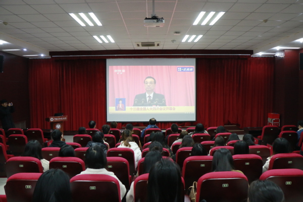 3月5日上午9点,十三届全国人大四次会议在北京开幕,国务院总理李克强作政府工作报告,600全讯白菜官方网站师生或齐聚文理楼142,或在教室、宿舍通过手机、电脑等多种方式收听收看“两会”盛况,热议政府工作报告及热点话题。