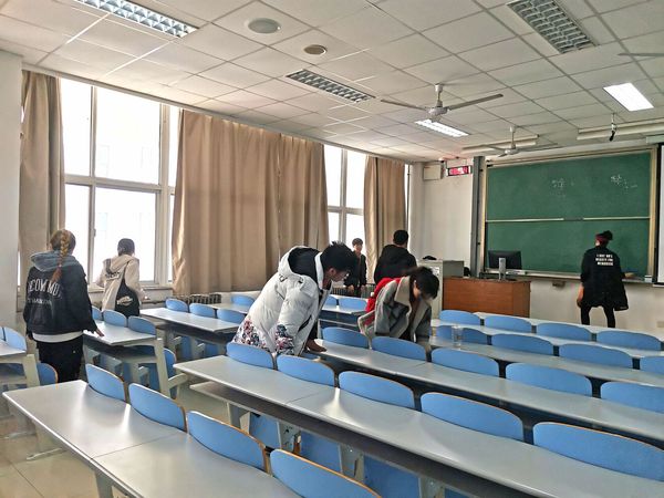 汉语言文学1901团支部部分成员参加“学习雷锋,温暖送情”——清扫教室志愿服务活动