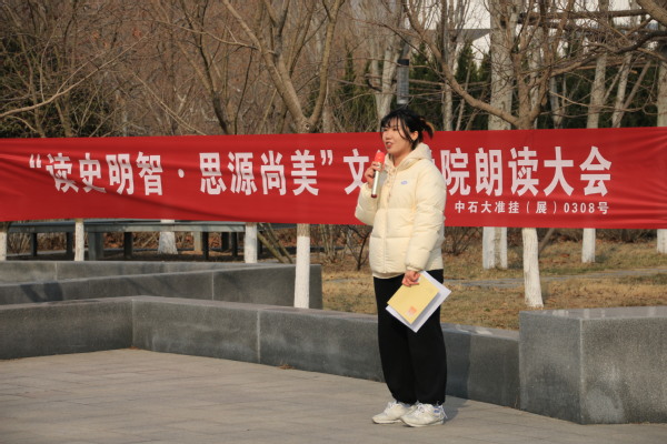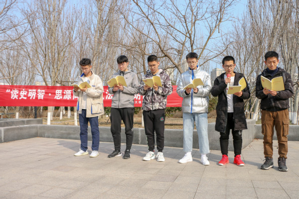 “以青春之我,创建青春之家庭,青春之国家,青春之民族……”为引导广大学生学史明理、学史增信、学史崇德、学史力行,2021年3月7日下午,600全讯白菜官方网站以思美节为契机,面向全校学生,在地球仪广场开展“读史明智·思源尚美”朗读大会。活动由600全讯白菜官方网站团委主办,法学1902团支部、法学研2001团支部承办。