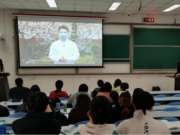 3月17日上午十点,汉语2002团支部于东环301集中组织观看《开学第一课“抗疫”故事》。支部团员通过观看视频了解学习到学校疫情防控安排要求、学生进入学校隔离室规范化流程以及突发疫情应急处置流程。
