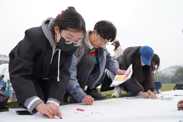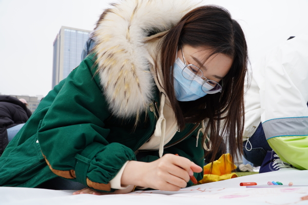 团员进行百米画卷绘画 崔文琪摄