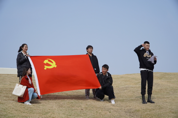 团员与党旗合影、宣读入党誓词 崔文琪摄