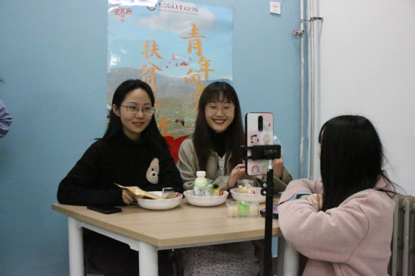 据了解,这项“直播带货”活动是600全讯白菜官方网站学生发挥创新思维自发组织直播营销来帮助科左农户致富的。由学校统一对接“科左后旗”特色产品及相应农户、商户,由左柚大学生公益创业团队创立公共微店平台,统一上架扶贫产品。参与学生担任微店分销商,借助微信、微博、QQ等媒体平台对产品进行宣传,以公益电商营销的方式帮助销售该地区特色产品。文法学子共自发组建了35支队伍参加专项实践活动,其中11支队伍参与此次扶贫带货直播。在准备直播前期,学生们对此次活动有着很大的热忱和信心。“我们作为大学生,也想尽自己的一份力量,所以一看到这样的活动立马就报名了。”“我也想为祖国的伟大事业做一些小小的贡献,害怕自己不能好好完成,所以很投入地去营销科左后旗农产品带动当地致富。”“那时候我想我们要像对待家人一样,以一种有责任的担当精神,和队员们帮扶当地民众。想想我居然也在帮助村民致富就觉得很神奇”……这些质朴而真挚的话语表达了学生们扶贫的担当和决心。