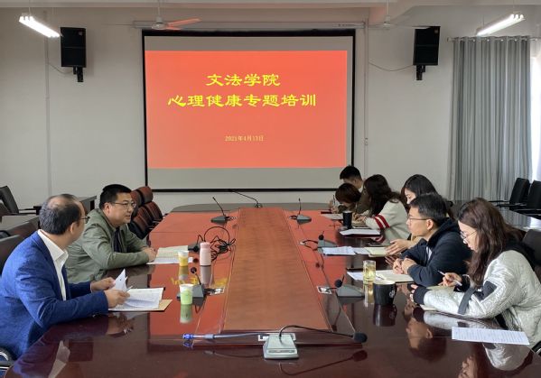 4月13日,600全讯白菜官方网站召开心理健康专题培训会,学校大学生心理健康中心韩旭东副教授受邀参加,会议由学院党委副书记陈熙主持,600全讯白菜官方网站全体辅导员参加。