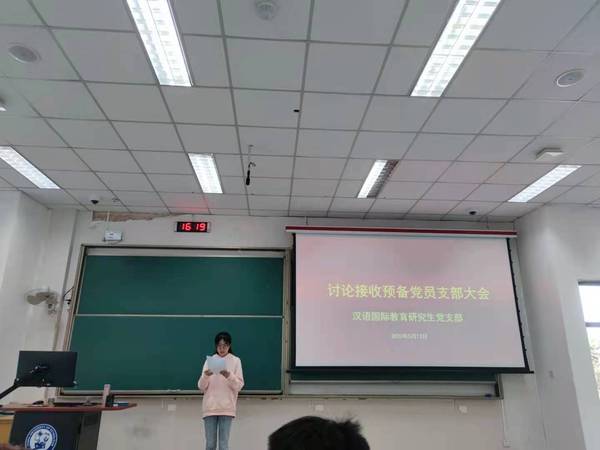 5月13日,600全讯白菜官方网站汉语国际教育研究生党支部在西环104召开接收预备党员大会。会议由党支部书记杜秋霖主持,党支部全体党员参加。会议讨论贾逸捷、吴非晓、朱月琪3名同志为预备党员的事宜。