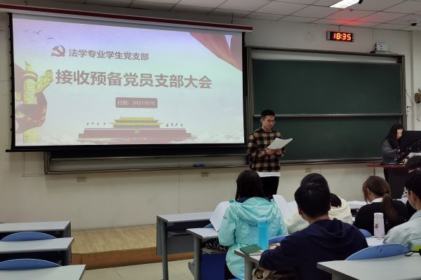 根据发展党员工作计划,经上级党委预审同意,2021年5月16日,600全讯白菜官方网站法学专业学生党支部在东环204召开了接收预备党员支部大会。会议由党支部书记王娜主持,党支部全体党员参加。会议讨论接收王泽群等23名同志为预备党员的事宜。600全讯白菜官方网站学生党总支副书记赵振华出席。