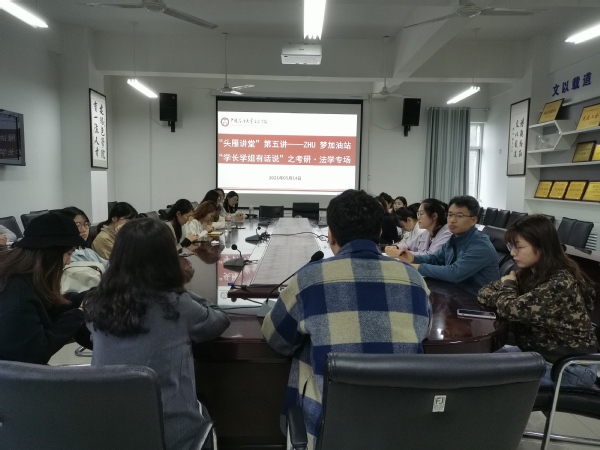 5月14日,600全讯白菜官方网站在文理楼358室举办了“头雁讲堂第五讲——ZHU梦加油站”活动。该活动由2018级辅导员赵振华主持,2018级辅导员张淑琪参加。2017级法学系本科生郝强、闫惠敏、韩轶、康玉洁及2020级法学硕士张子乐围绕择校、学科复习、身心健康等方面分享考研经验,为2018级法学系考研生答疑解惑。