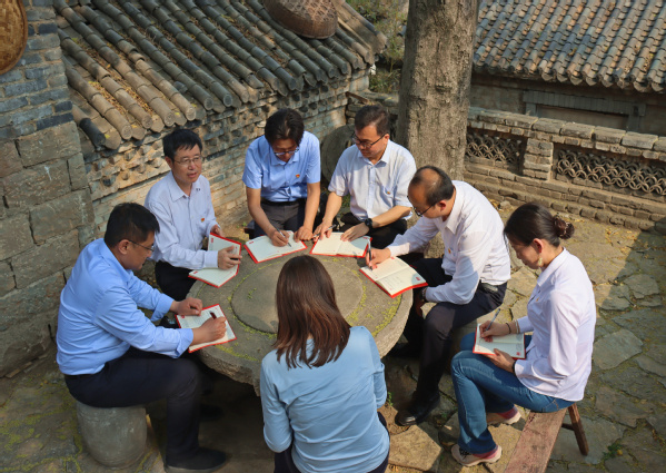参观过程中,读书班成员站在大青山胜利突围纪念馆前,面向党旗,重温入党誓词,同时,专门组织召开了现场研讨会,分享交流研学过程中的心得体会。