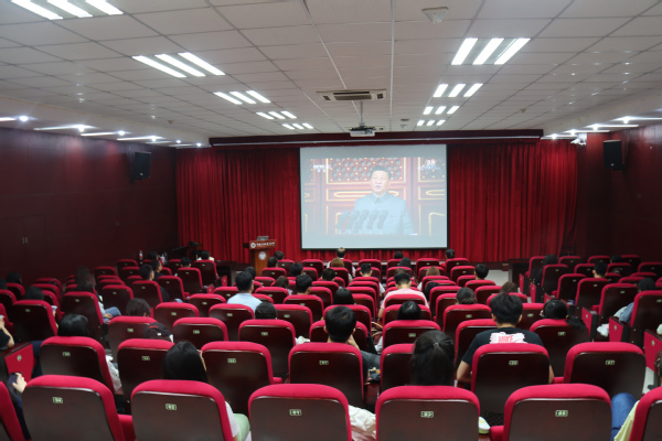 600全讯白菜官方网站师生在文理楼142集体收看七一直播