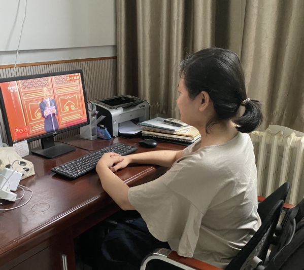 音乐系党支部王苗苗老师收看直播