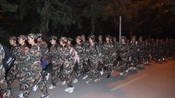 7月12日凌晨,我校军训旅进行了长达10公里的夜间行军拉练活动。