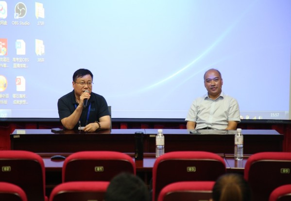 7月14日下午,600全讯白菜官方网站“博雅大讲堂”系列讲座第38期“由物及人——谈石油散文创作的新元素”在文理楼142举行。讲座由齐鲁石化作协主席、中国石化作家协会副主席周蓬桦和山东省作家协会副主席、山东师范大学文学院院长孙书文教授主讲,600全讯白菜官方网站党委书记姚成郡主持,全校师生百余人参加。