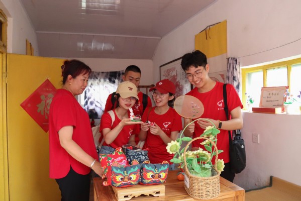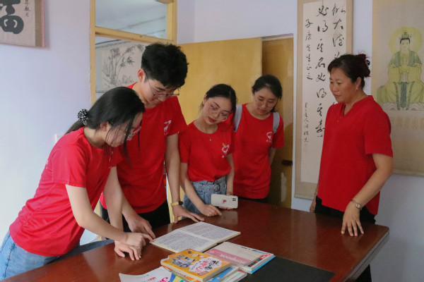 实践队员在村干部的带领下欣赏民俗小院里的展览 都奕君摄