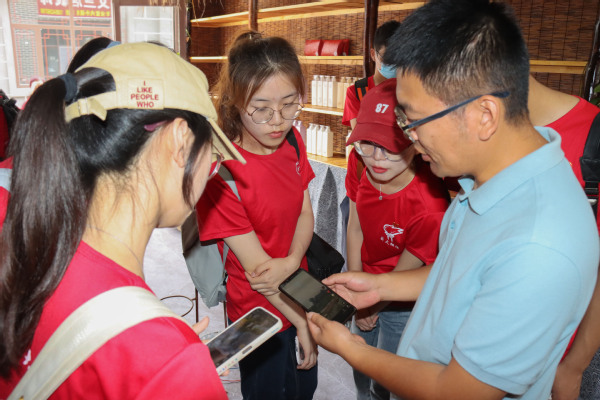 实践队员在韩琪的介绍下观看村民的抖音带货 肖长林摄