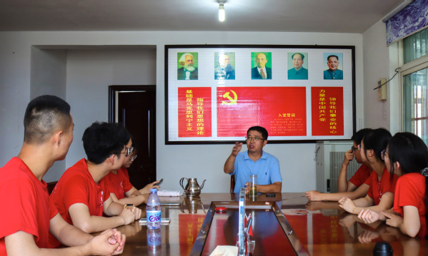 实践队员采访党支部书记韩宗祥 安滢霖摄