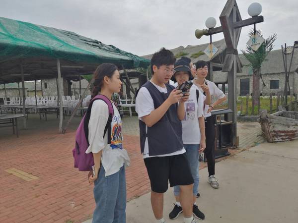 实践队员用无人机拍摄鲁海丰海洋牧场 李洁摄