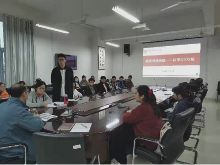 11月1日下午,法学2102班于文理楼358组织开展“院领导进班级”座谈会,党委副书记陈熙,辅导员赵延升、曹佳豪参加,法学2102班37人全员参与。