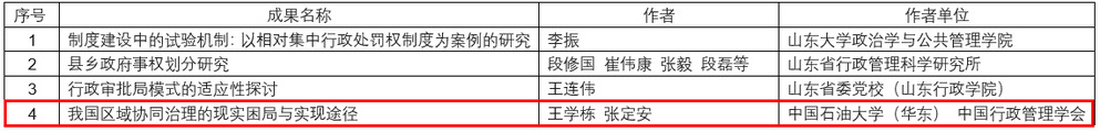 经过近一年的组织与评审,近日山东省委机构编制委员会办公室公布了首届山东省机构编制优秀科研成果评选获奖名单,其中,全讯王学栋教授的“我国区域协同治理的现实困局与实现途径”喜获一等奖。本次评选经过多轮评审,共确定优秀科研成果160项,其中一等奖16项,二等奖48项,三等奖96项。